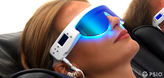 Le PSiO c’est un outil de relaxation qui prend la forme d’une paire de lunettes équipée d’un lecteur MP3. Ce dispositif utilise la technologie de la stimulation par la lumière colorée à des rythmes très précis combiné à des guidances audios. Dans les programmes PSiO, la fréquence de stimulation visuelle varie de 3 à 12 cycles par seconde, en mode pulsé ou continu. Le mode pulsé permet de se détendre rapidement et d’annuler la rumination, alors que le mode continu est plutôt utilisé pour la luminothérapie, les deux permettant d’accéder facilement à un état de «lâcher-prise», propice à la suggestion positive.